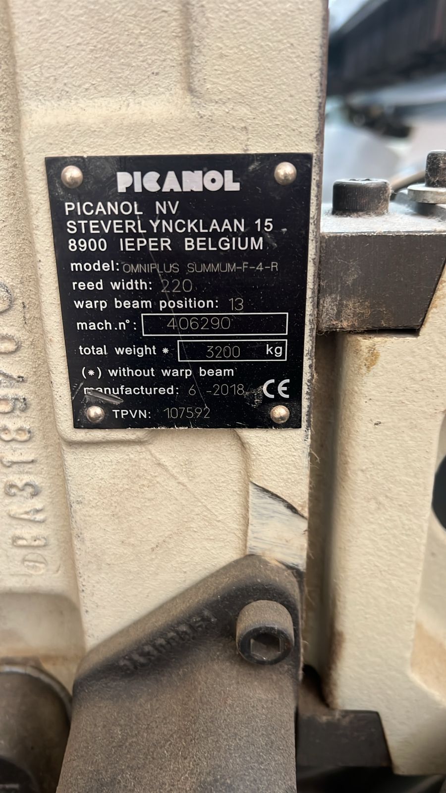 ✅ Key Specifications – PICANOL OMNIPLUS SUMMUM F-4-R (2018)